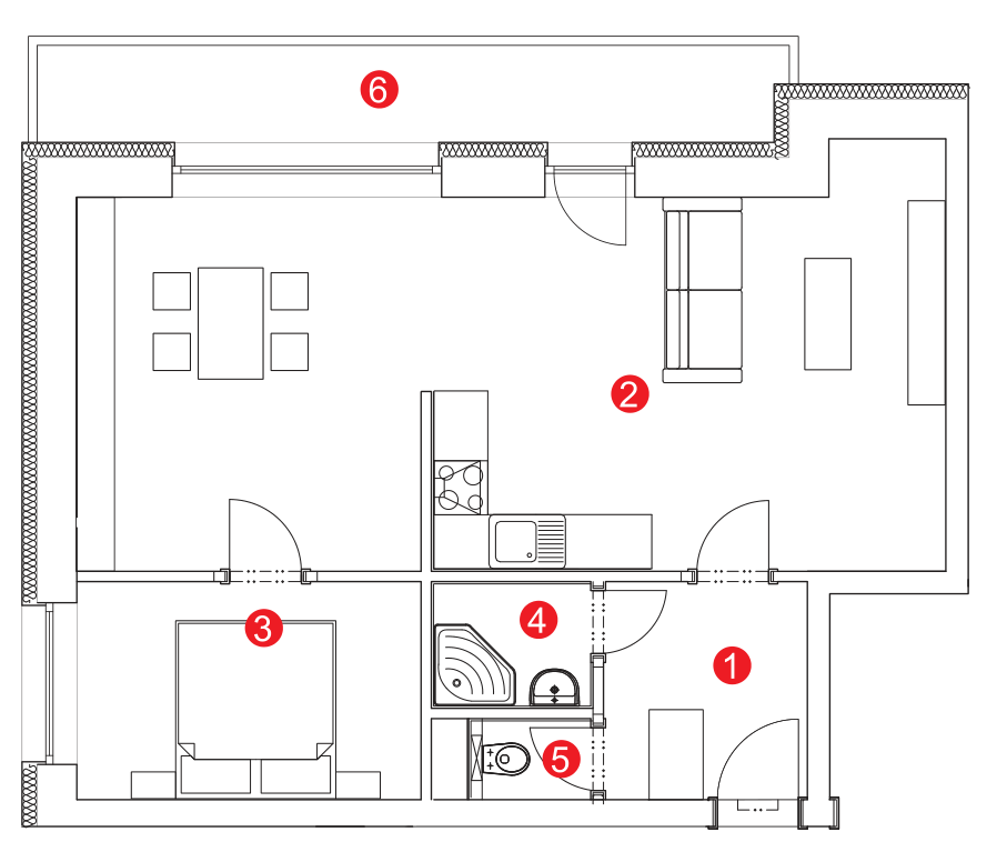 bytu 2+kk s balkonem 9.00 m